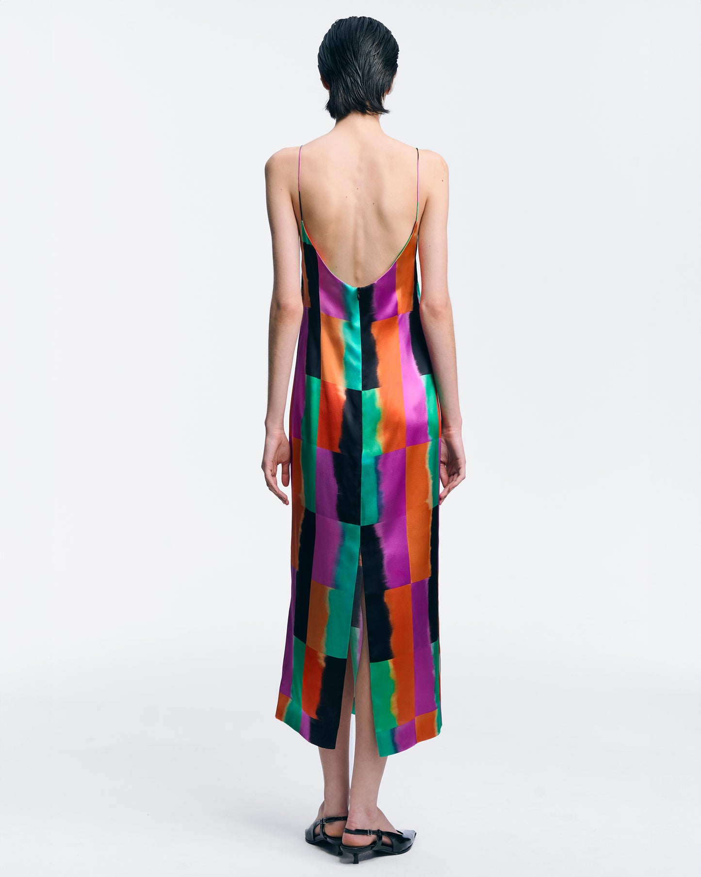 Meticulously crafted from the finest silk fabric and adorned with our art-inspired Vertical orange and green waves print, the Leila dress radiates timeless elegance through its graceful drape, ensuring a flattering silhouette for any occasion. With its loose fit, extended length, and delicate whisper-thin shoulder straps, the dress effortlessly encapsulates both opulence and enduring style. Whether for a cocktail party or dinner date, this attire seamlessly merges versatility with chic fashion, making it an ideal choice for various events.