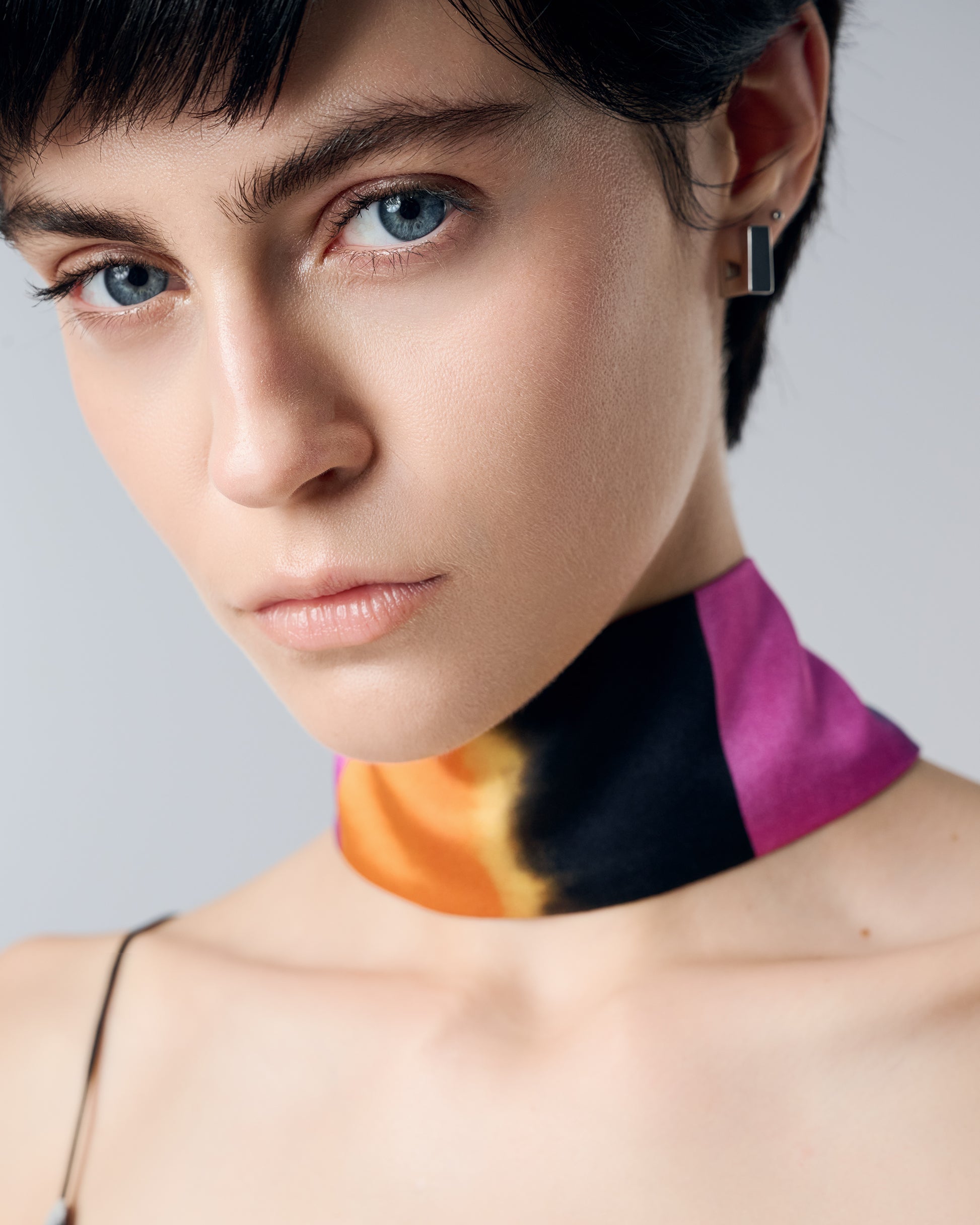 Our Mira silk scarf is a versatile and luxurious accessory designed to complement any outfit. Embellished with our art-inspired horizontal orange and green print and fashioned from sumptuous silk, it exudes timeless elegance. Whether draped elegantly around your neck, cinched as a chic belt, or styled as a headscarf, the possibilities are endless. Let your creativity flourish and make a statement with the timeless sophistication of our Mira silk scarf.